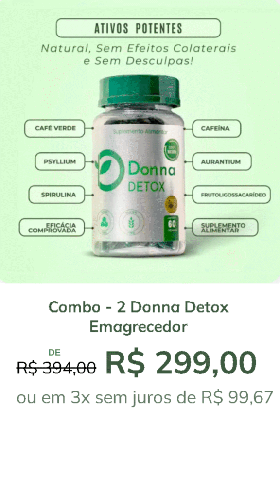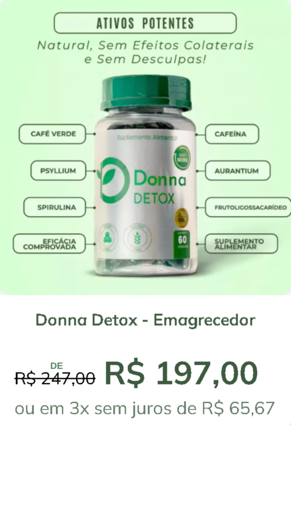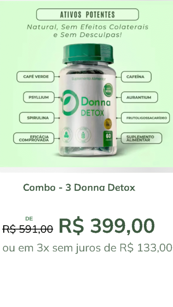 O Donna Detox é um produto emagrecedor que contém uma combinação de ingredientes como café verde, psyllium, frutooligossacarídeos, spirulina, aurantium, cafeína que são uma fórmula combina e exclusiva do donna detox no mercado. Alguns desses ingredientes possuem propriedades que podem ajudar na perda de peso, como ação termogênica, inibição da absorção de gordura, redução do apetite e melhora do metabolismo.
